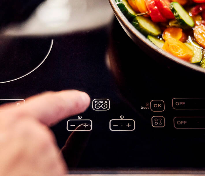 Com apenas um toque, experimente uma nova geração de placas com um controlo de calor rápido e impressionante. Um conjunto de três funções automáticas: Push&Boil, Push&Warm, Push&Moka, oferecendo uma solução fácil para ferver, reaquecer e fazer um ótimo café moka com o toque de um botão.